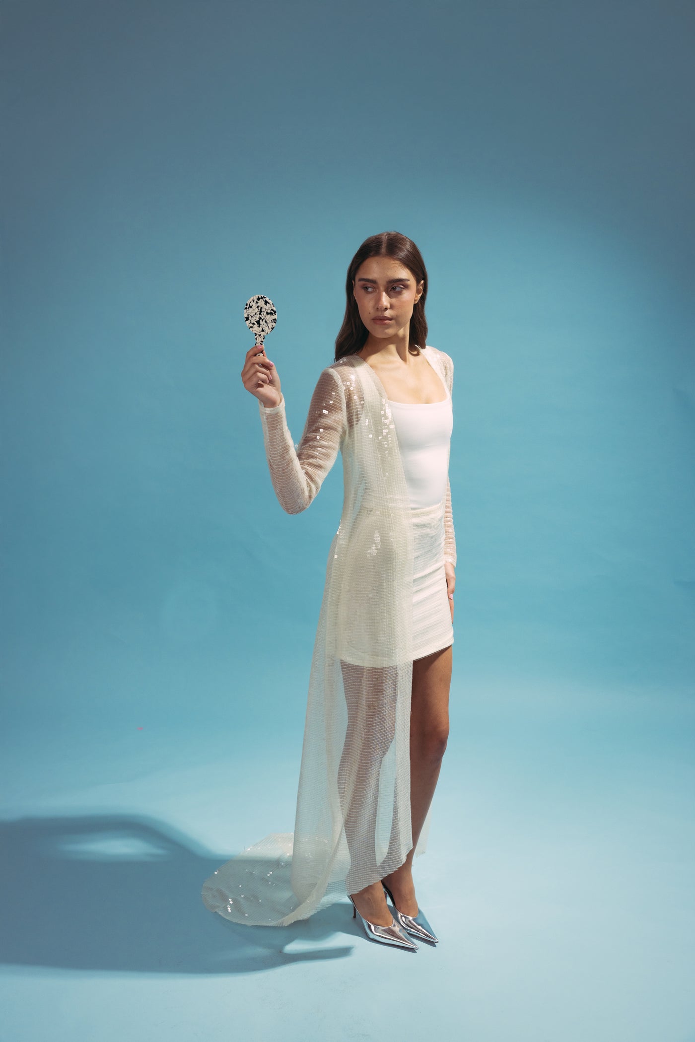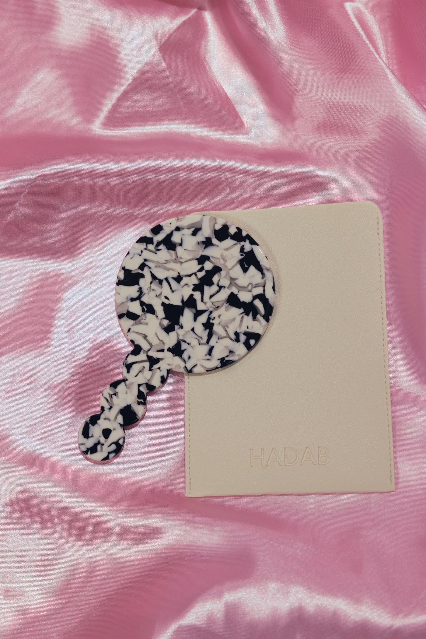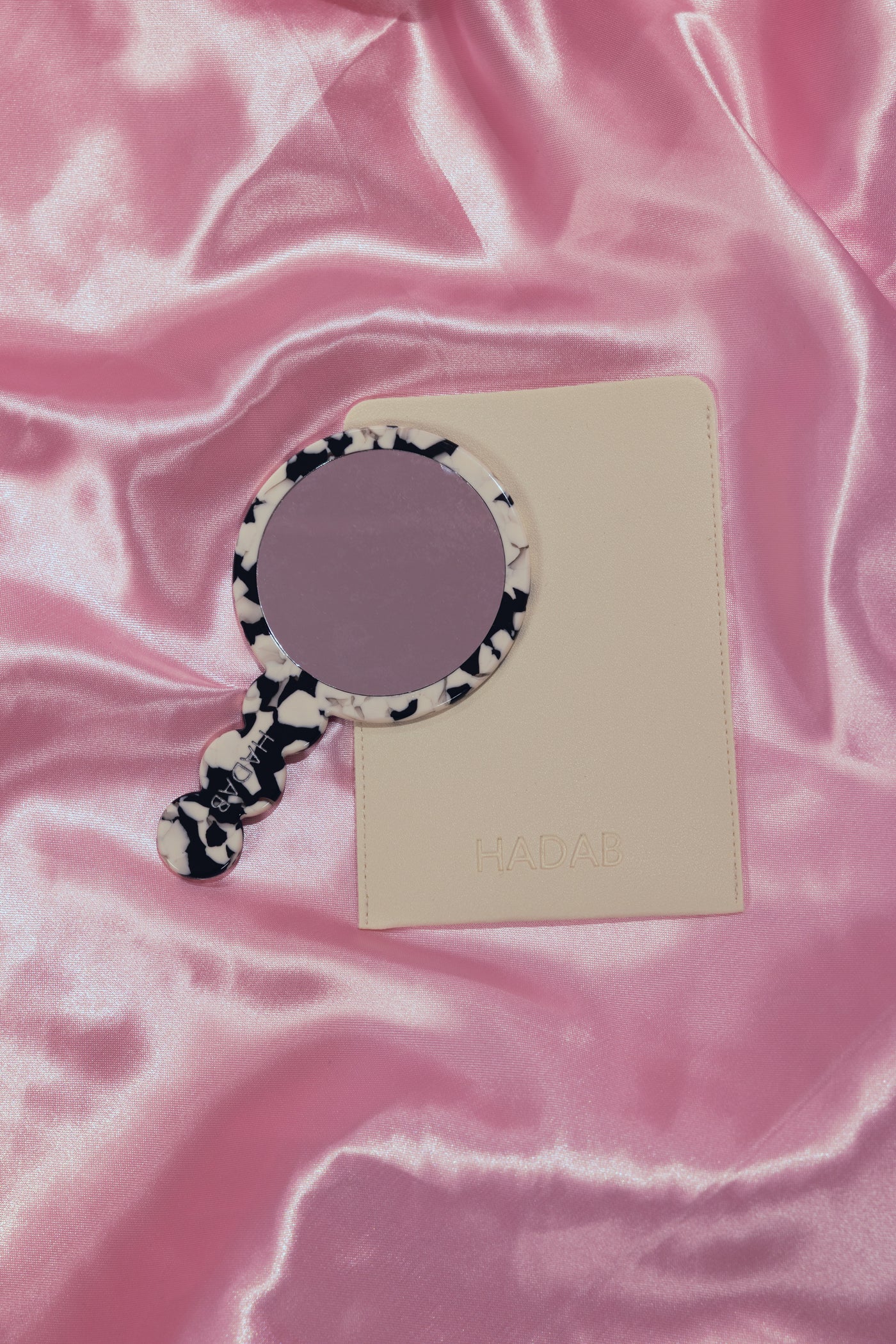 Black and white mirror with leather pouch