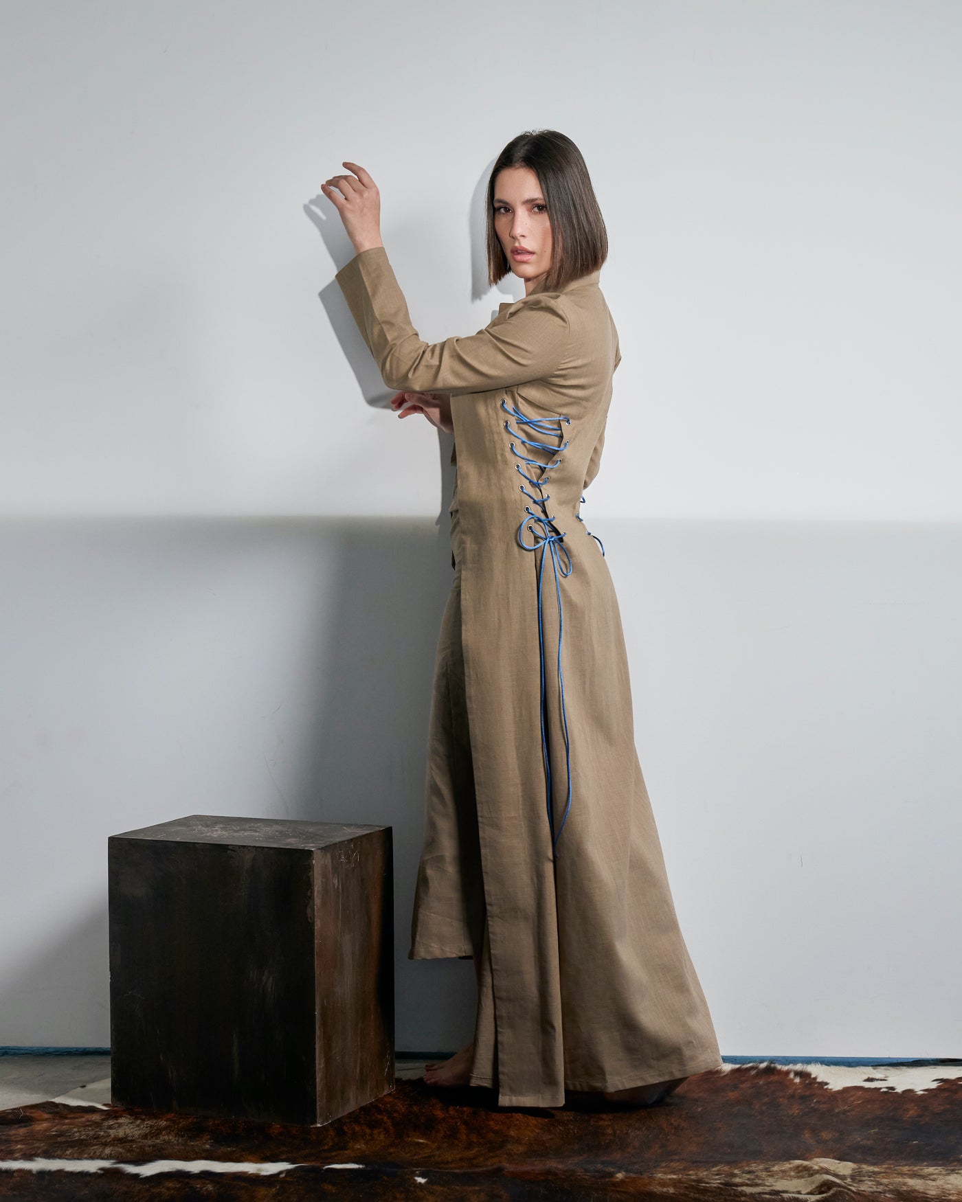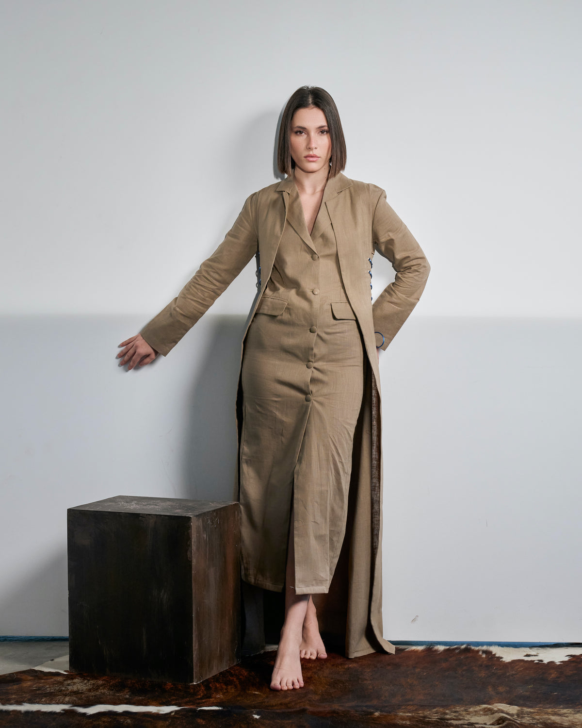 2 pieces kaftan - fitted jacket - fitted dress with buttons- length 55 inches- Models are wearing size XSOrder takes: 10 days for Kuwait 15 days for GCC