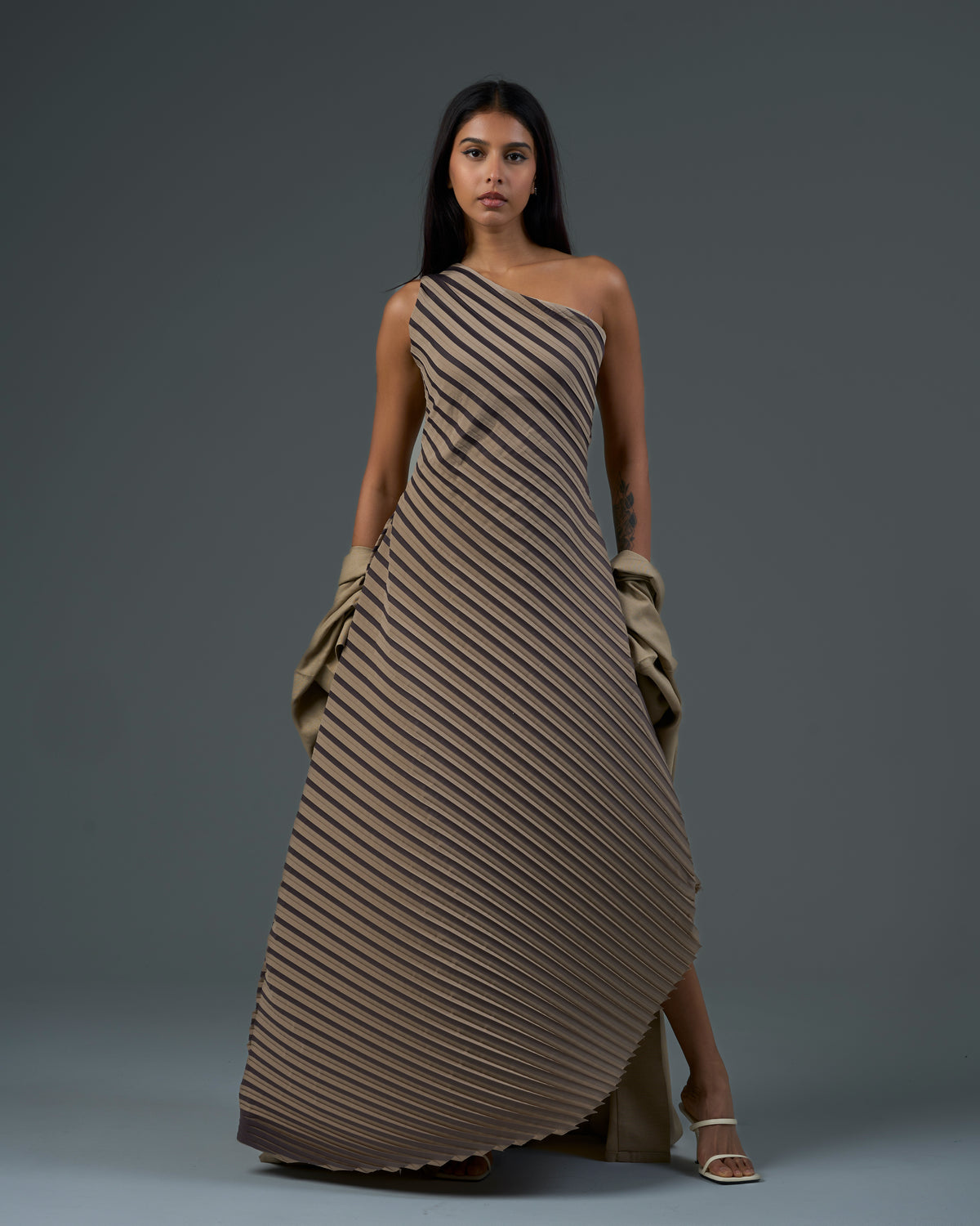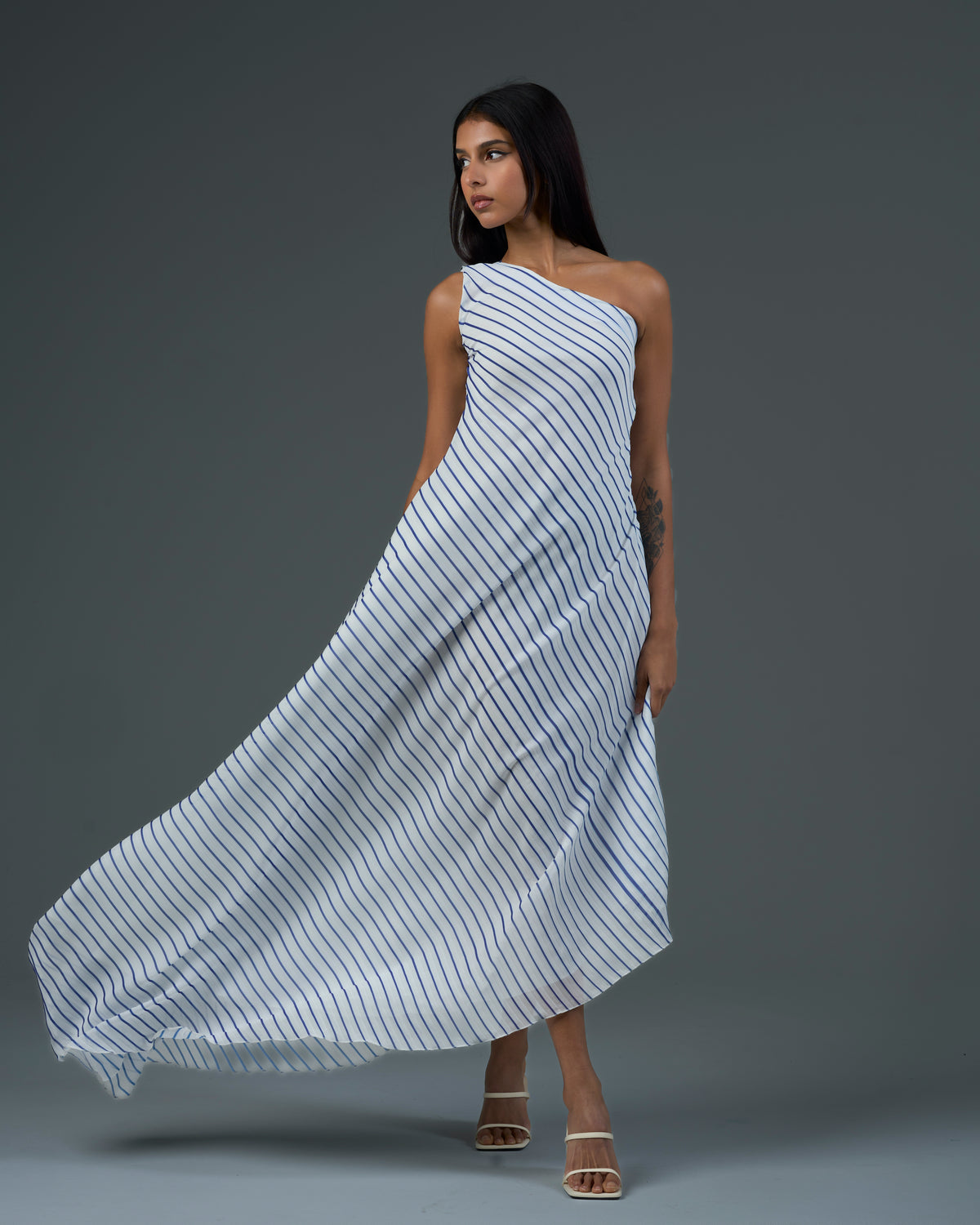 - one-shoulder stripped dress