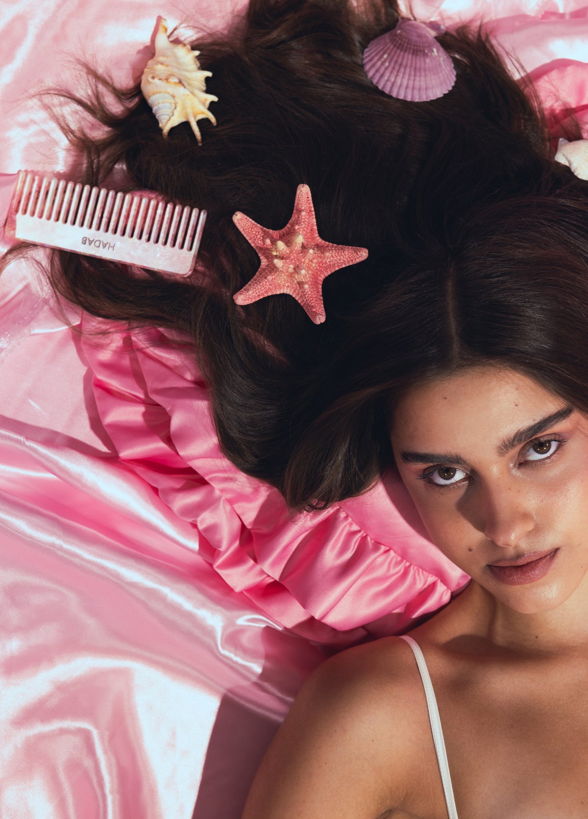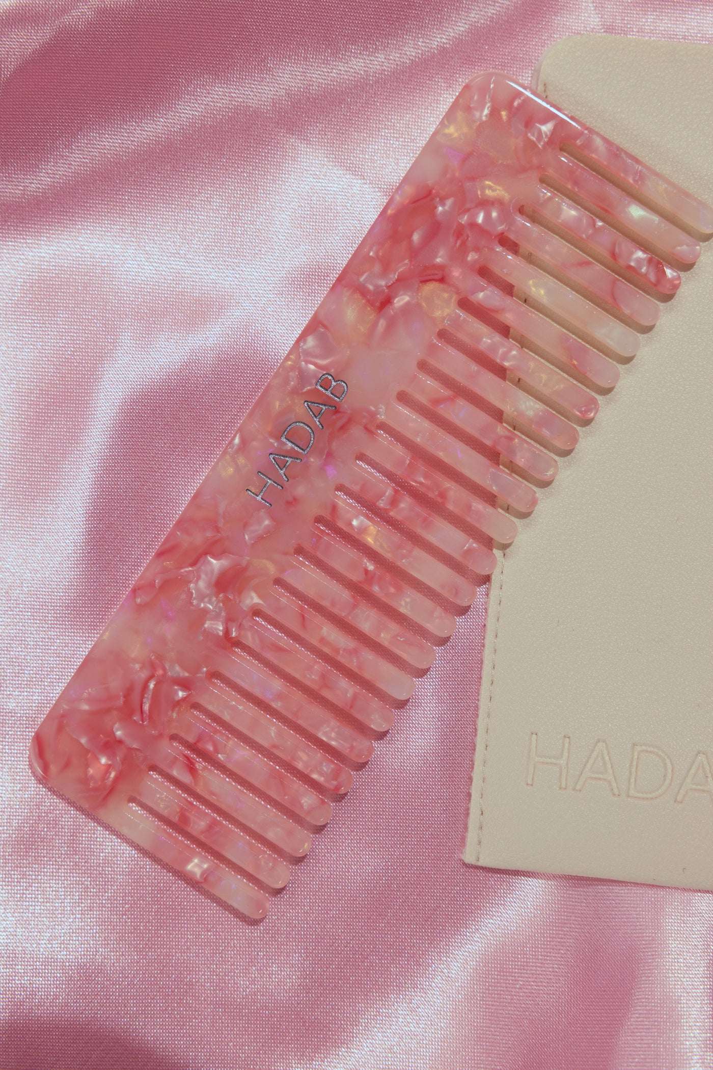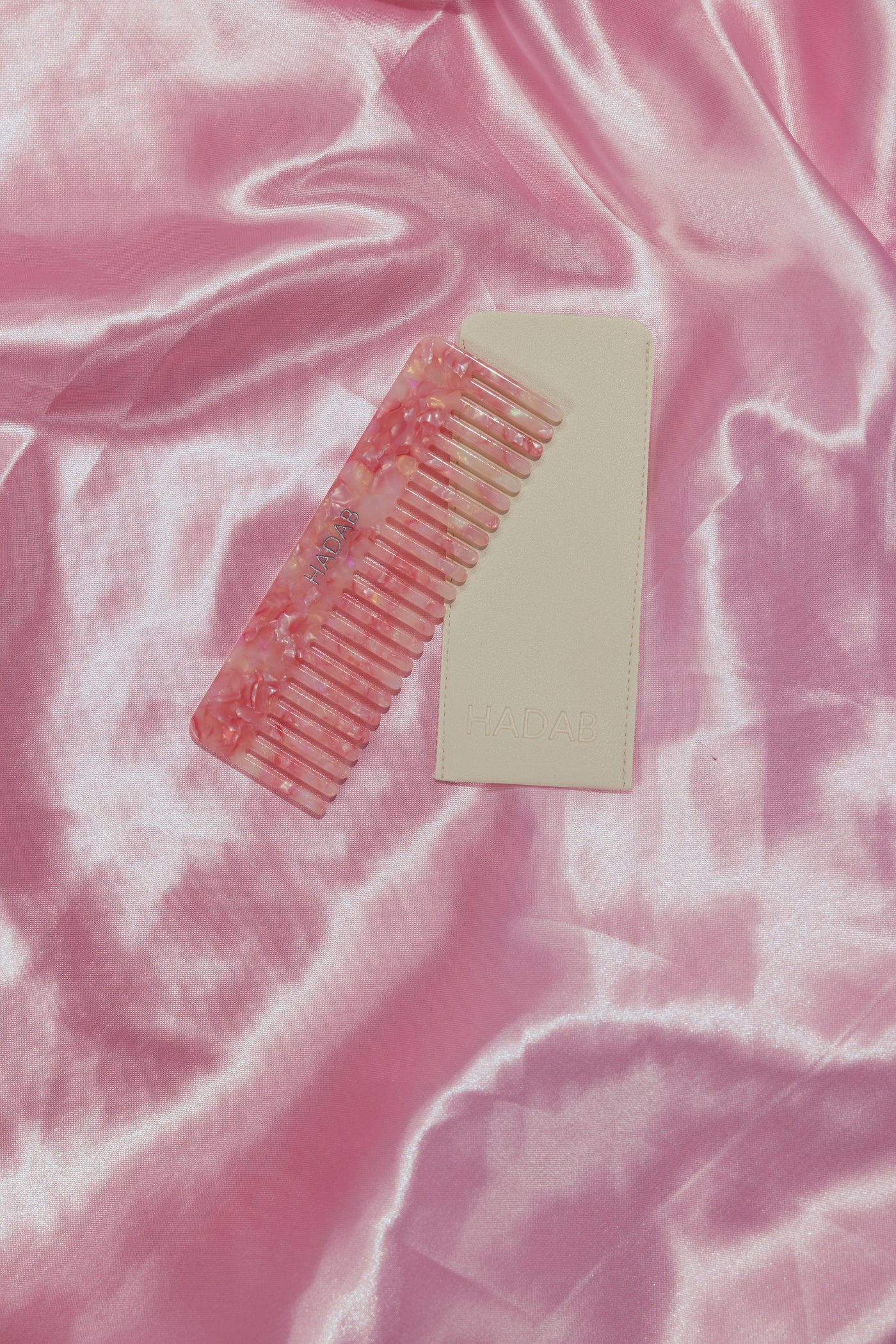 Pink hair comb with leather pouch