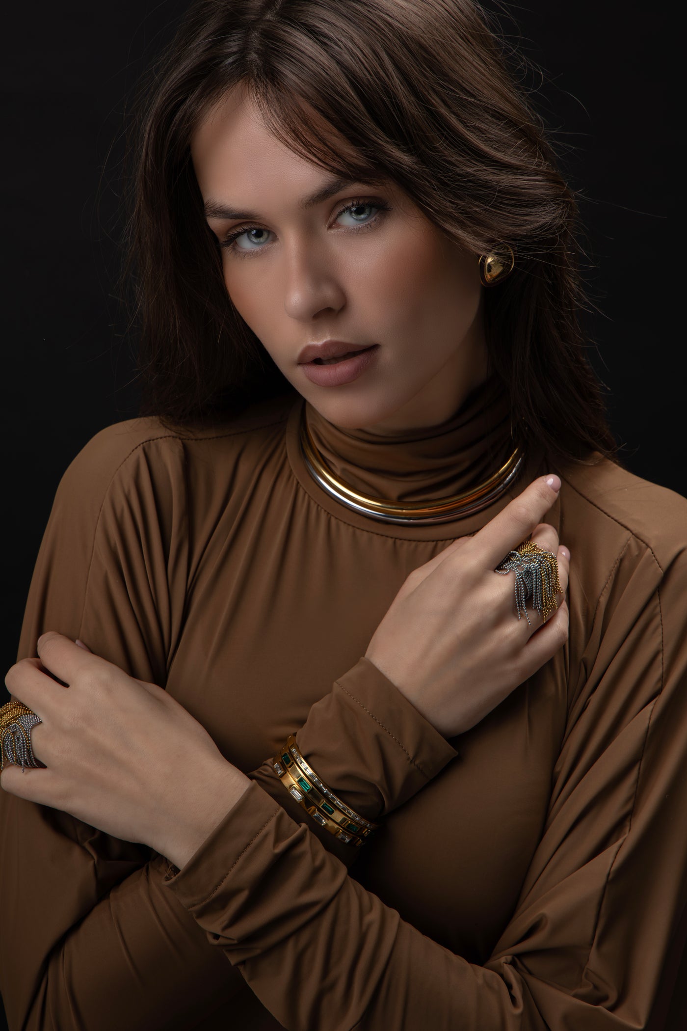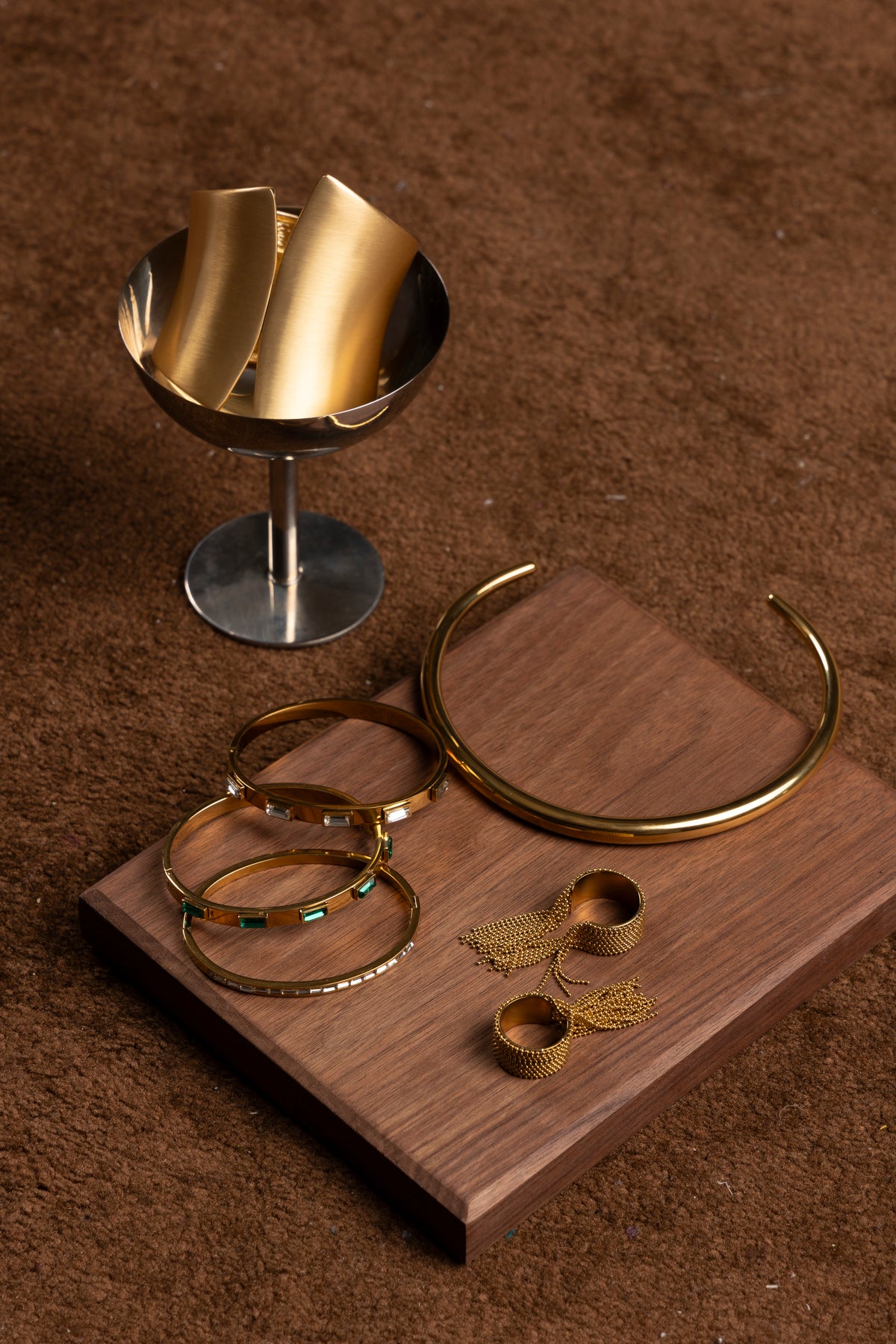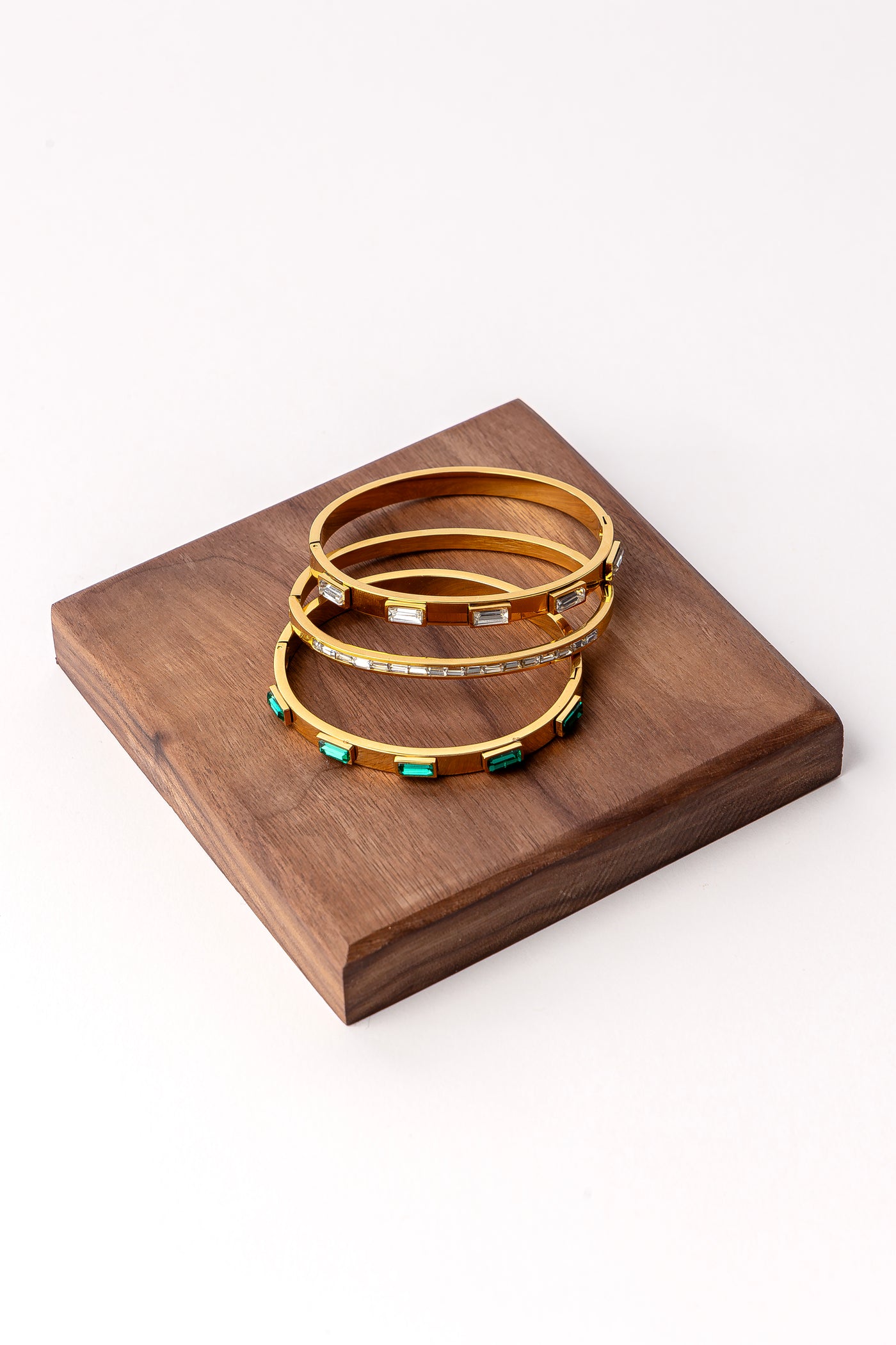 -color: three gold bracelet with green ,mini crystals and crystals gems