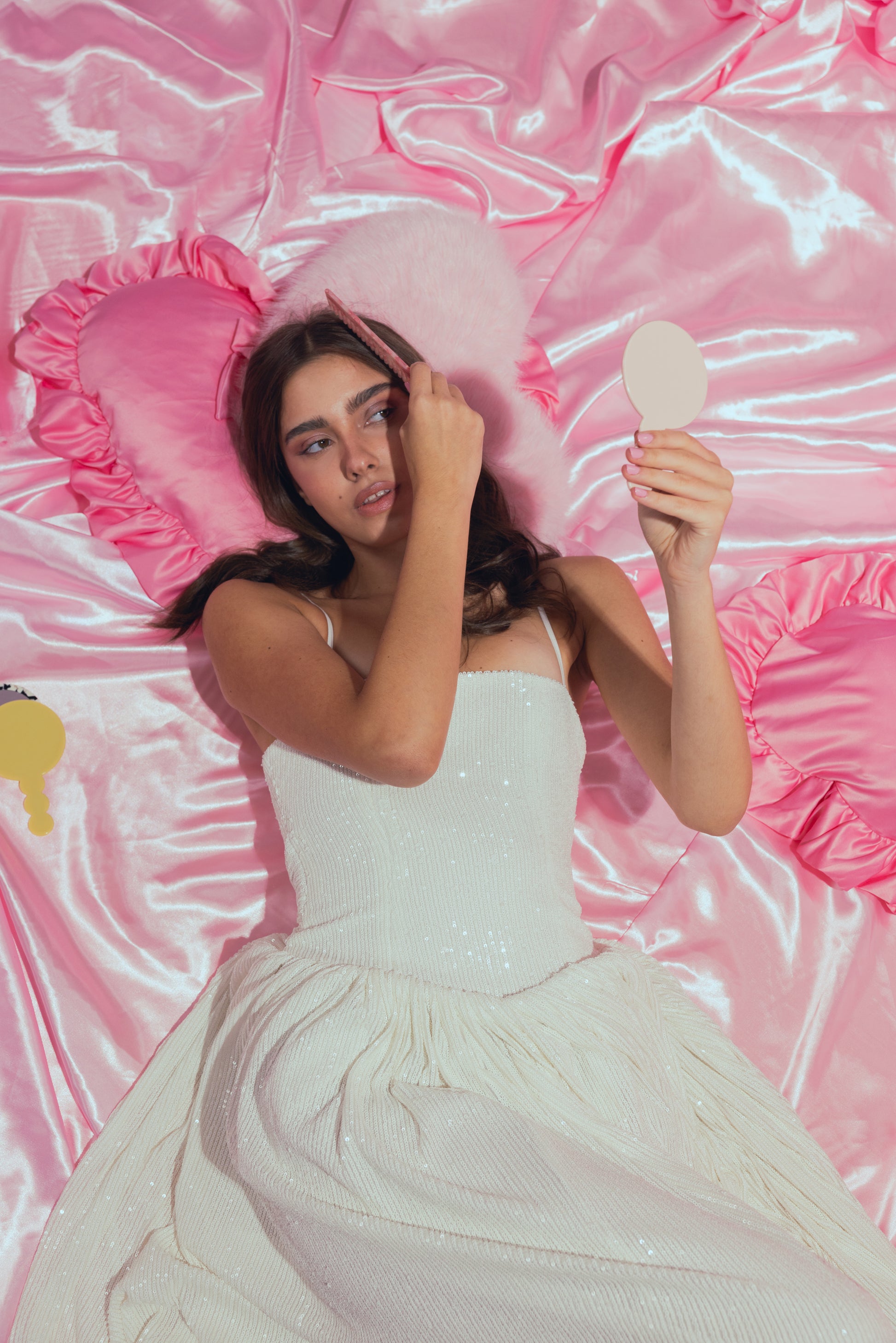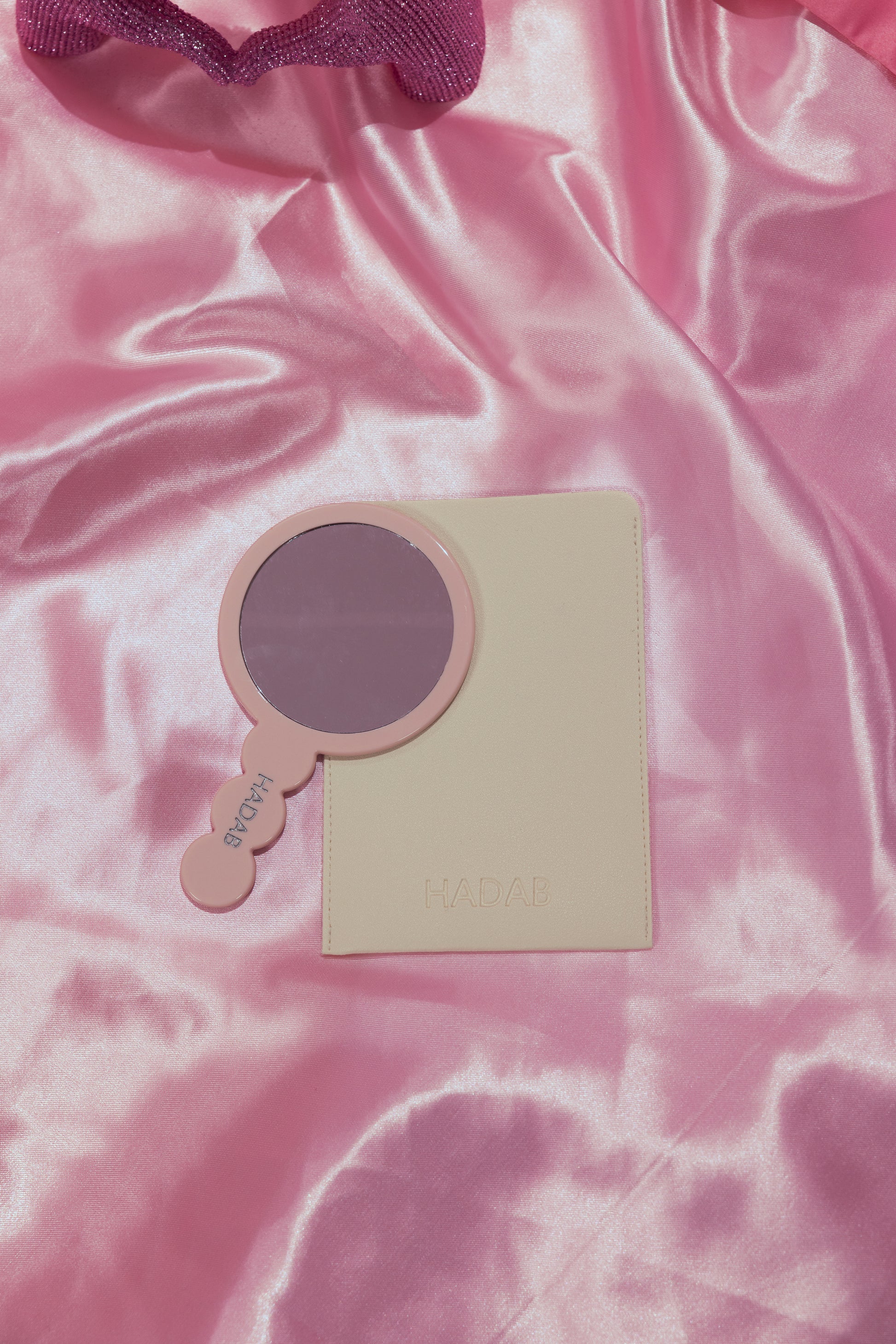 Matte Pink mirror with leather pouch